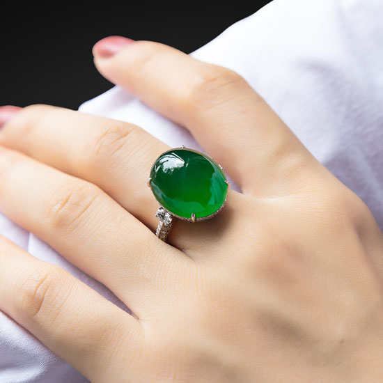 18k金镶嵌冰种满绿缅甸天然翡翠,翡翠裸石尺寸为